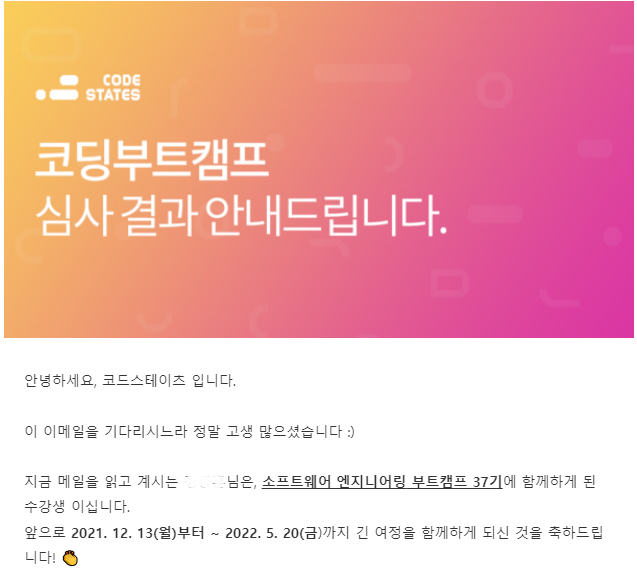 여튼 이 코드스테이츠를 지원하기로 하고 36기를 지원했다가 몇일만에 철회했다.