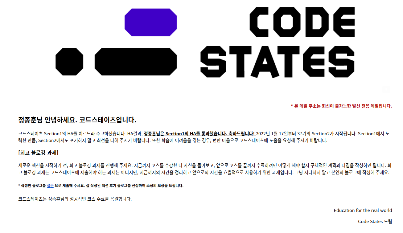 - 코드스테이츠 섹션 1을 들어간 직후의 나