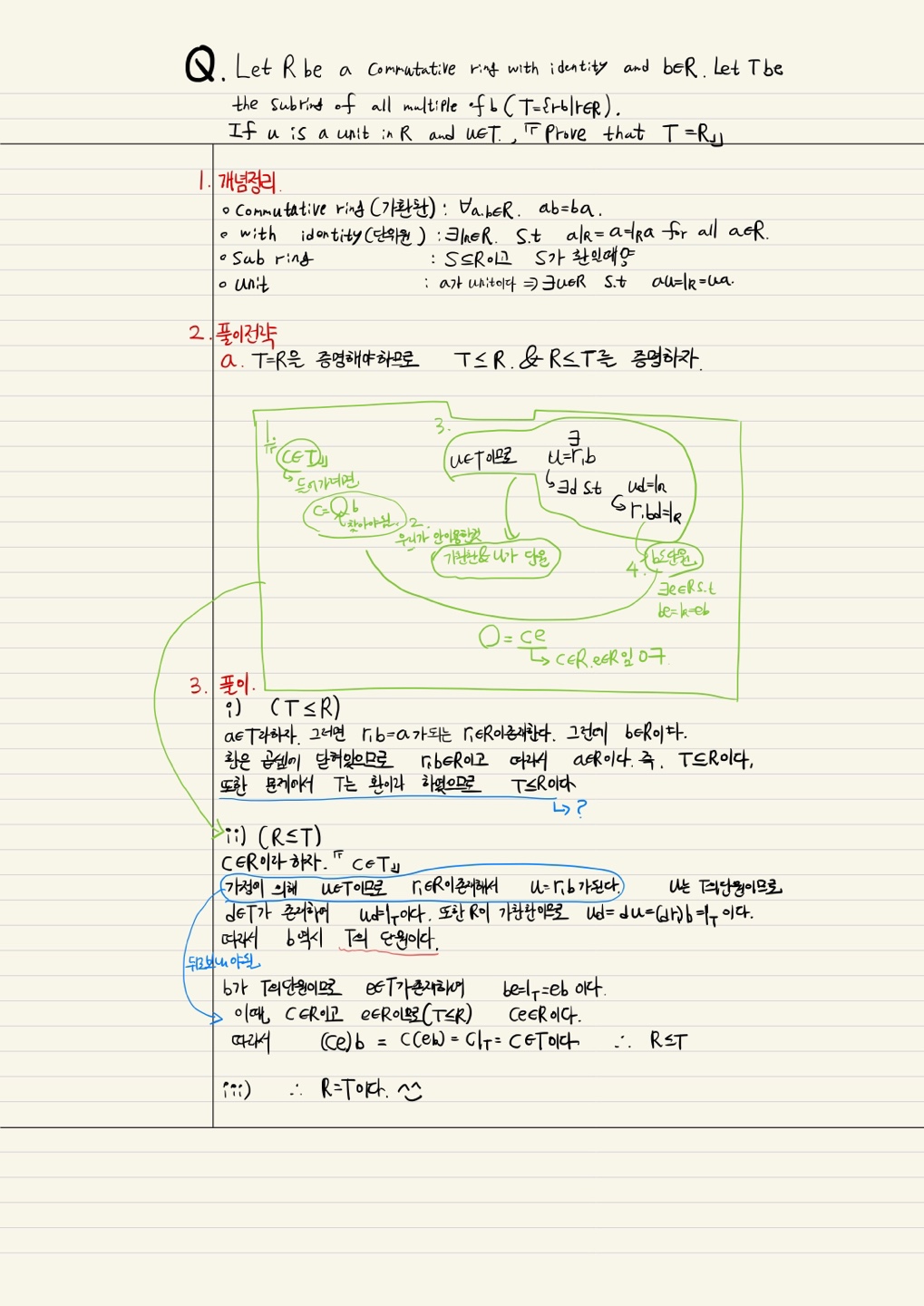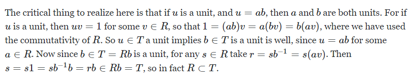 - 이 문제의 핵심은 u가 단원이므로 b도 단원인것을 알아채는것이다. (Q. 나아가 모든 T의 원소가 단원인가?)